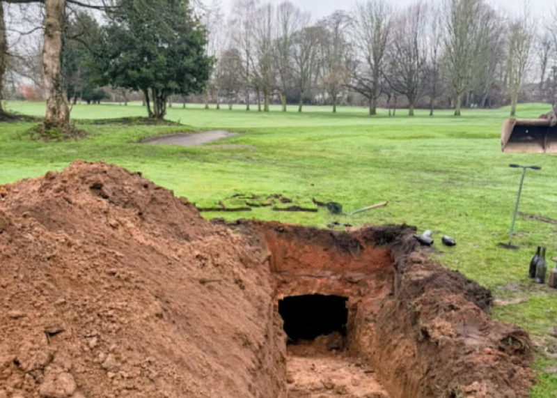 An abandoned wine cellar, thought to have been sealed for around 120 years, has been discovered after a sinkhole opened up on a golf course in Manchester. The brick cellar, which was filled with dozens of historic wine and port bottles, was unearthed by staff at the 13th hole at Davyhulme Park Golf Club in Trafford last week. It is thought to date back to the original manor house on the land, which was demolished in 1888. Martyn Hamer, a professional at the club, said: “The green keeper came into the shop and said: ‘I’ve made a discovery on the golf course.’” The staff member had seen the sinkhole and assumed that a drain had collapsed. After using the club’s on-site digger to excavate the area, he noticed the brick structure. He was then able to climb inside and look around with a torch, finding dozens of empty bottles. Mr. Hamer said that the club had been aware there were wine cellars on the course, but had never known where they were located. There are likely to be more. (via The Independent)