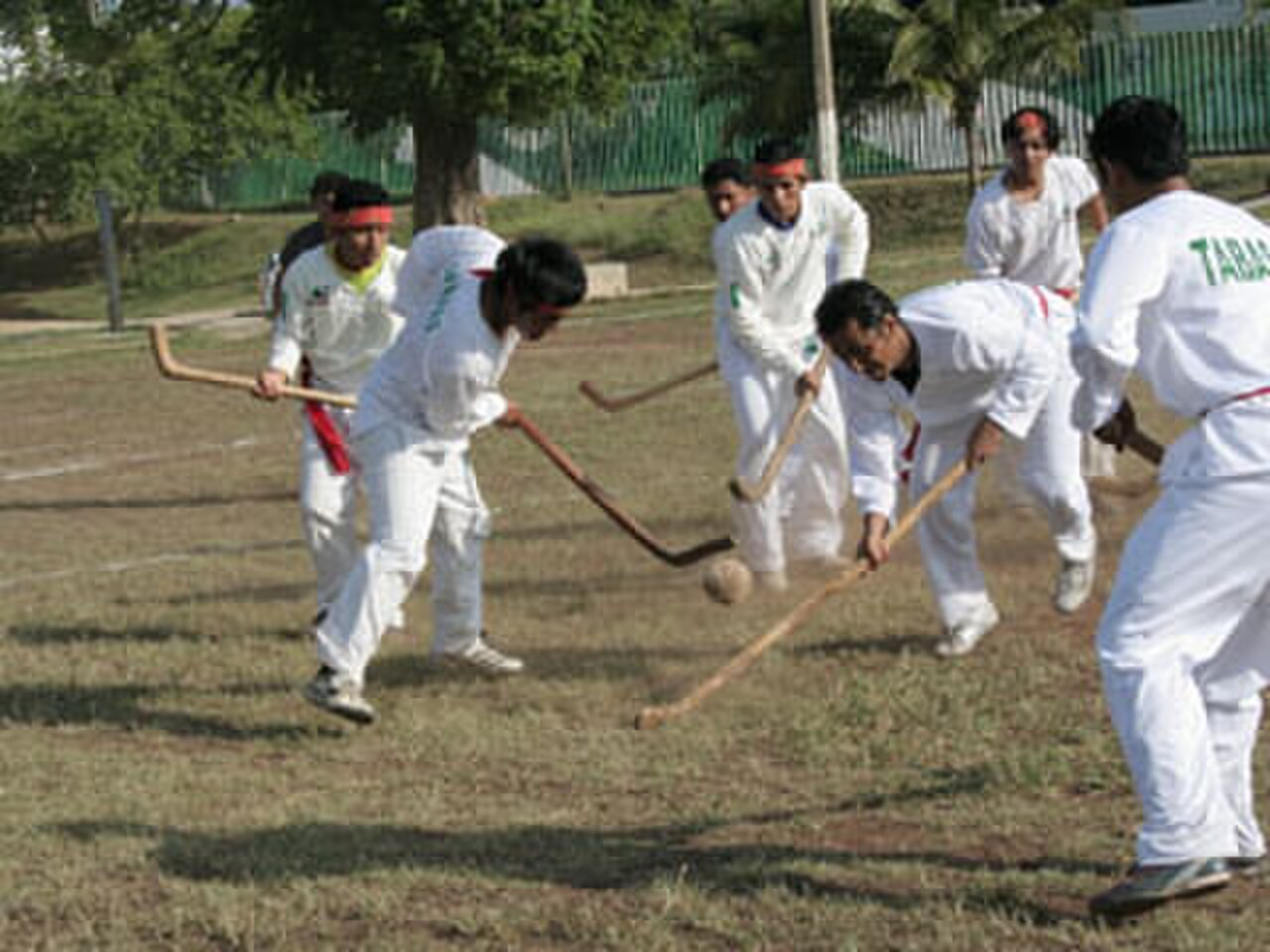 From Wikipedia: "Pelota purépecha (Spanish for "Purépecha ball"), called Uárukua Ch'anakua ( "a game with sticks") in the Purépecha language, is an Indigenous Mexican sport similar to those in the hockey family. A common variant, distinguished as pasárutakua in Purépecha, uses a ball which has been set on fire and can be played at night. It has a league, several practicing communities and about 800 players across Mexico as of 2010. It is one of 150 pre-Hispanic Mexican games at risk of dying out along with Ulama. The game, which originated in Michoacán, is believed to have been developed up to 3500 years ago and something very similar to pelota purépecha is depicted on the murals of the Palacio de Tepantitla at Teotihuacan."