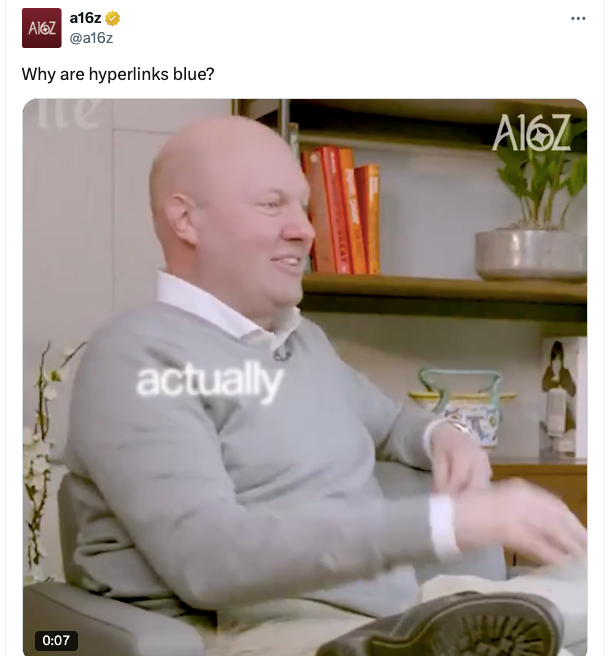 Hyperlinks are blue because blue is Mosaic developer Marc Andreessen's favourite colour