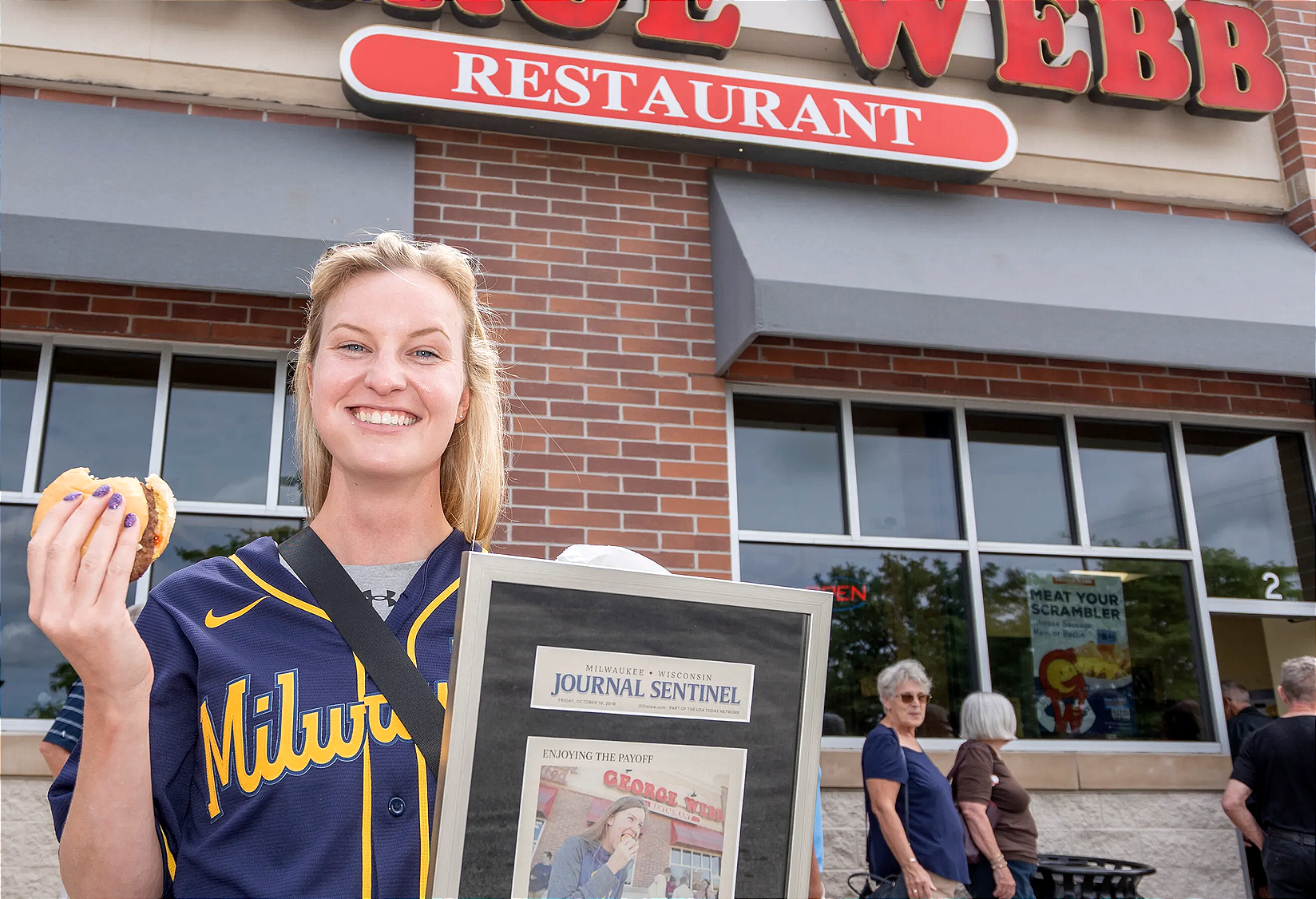 From ESPN: "The Milwaukee Brewers' franchise-record 14-game winning streak resulted in one heck of a tab for a local fast-food chain. George Webb promises to give away free hamburgers whenever the Brewers reel off at least 12 straight victories. The local chain delivered on its promise Wednesday, as fans lined up outside each of its 26 Milwaukee-area locations. A George Webb spokesman said the chain expects to give out about 180,000 burgers as part of this promotion. George Webb officials purchased 25,000 pounds of beef, 4,000 pounds of onions, 300,000 pickle slices and 200,000 buns in preparation. During the years when the Braves played in Milwaukee before moving to Atlanta, George Webb promised free burgers if they won as many as 13 straight games. When Milwaukee welcomed the Brewers in 1970, George Webb changed the promotion and promised to give away free burgers for every 12-game win streak. This marks the third time George Webb has had to deliver on its promise."