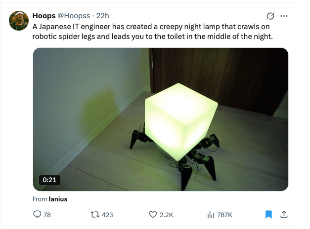 A Japanese engineer created a night lamp that crawls on robotic spider legs