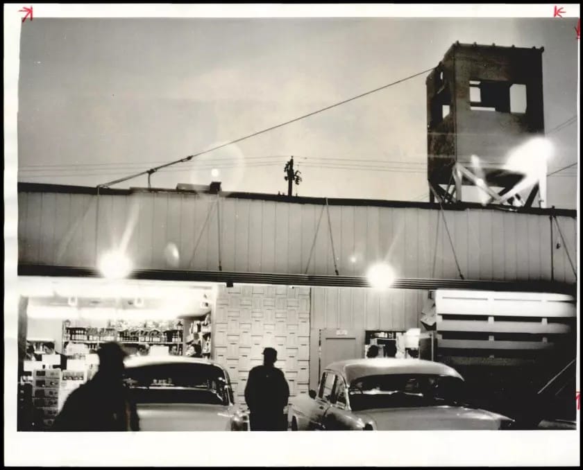 Byron’s Liquor Warehouse is one of the largest liquor stores in Oklahoma. The state entered the union dry in 1907 and stayed dry for more than two decades. In April 1959, Oklahomans voted to repeal prohibition, or “go wet,” and Byron Gambulos was involved in helping leaders prepare for the legal sale of alcohol. Other people in the liquor business were not happy with the competition. Someone threw a homemade bomb into Byron’s Liquor Warehouse, damaging a small section for the building. When the store was bombed again a short while later, Gambulos decided he needed protection. He built a rectangular, reinforced wooden structure with windows cut out on each side and put it on the business’ roof. Gambulos and his friends manned the tower at night, armed with pistols, shotguns or any available weapons. (via KGOU)