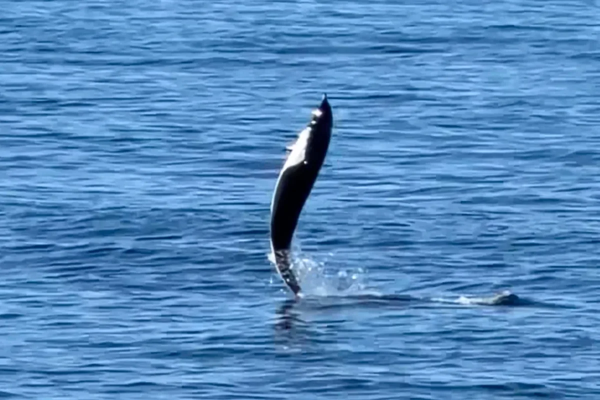 Whale watchers in California were delighted by a rare display known as 'tail walking’ by a northern right whale dolphin. In the footage, which Monterey Bay Whale Watch shared on Instagram, a black and white dolphin holds itself upright and skips across the water as if it was using its tail like feet. Like other dolphin species, these animals are known for their playful nature. They often do repetitive leaps for fun or communication within the dolphin herd, says Nancy Black, a marine biologist and owner of Monterey Bay Whale Watch. California as a deep submarine canyon occurs very close to shore allowing deep water species of whales and dolphins to be found closer to shore here. But this particular behaviour is not often seen. “I can’t express to you how uncommonly rare this behaviour is,” the wildlife guide tells the guests on the boat. (via Discover Wildlife)