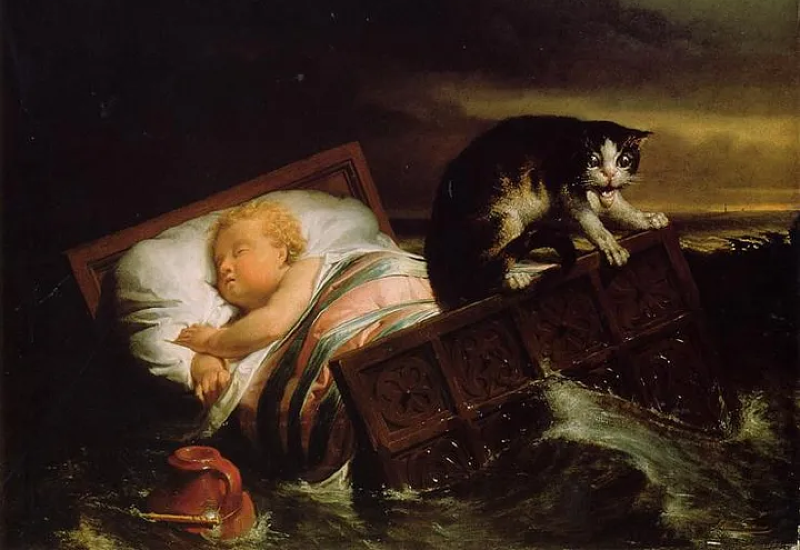 During a flood in 1421 that wiped out a Dutch town a cat helped save a baby