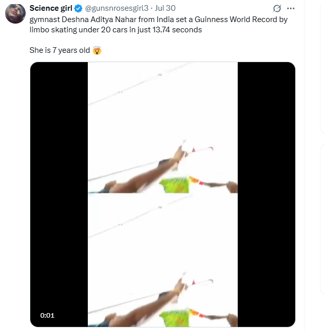A 7-year-old Indian girl set a world record by limbo-skating under 20 cars