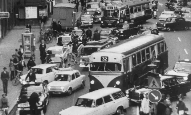 On September 4, 1967 Sweden switched from driving on the left-hand side of the road to driving on the right. "Cheering crowds brought traffic to a halt here today as Sweden changed to driving on the right after four years of preparations, 40 years of argument, and at a total cost estimated at double the official figure of £40m," The Guardian reported. "Though the centre of the city had been barred for nearly 24 hours to all but taxis, buses, and cars with special permits, a solid jam developed as sightseers, cyclists, and television cameramen swamped the roadway. The police watched dourly as long lines of traffic – headlamps glaring, horns blowing –tried vainly to switch sides in the approved manner, getting hopelessly entangled in the process."