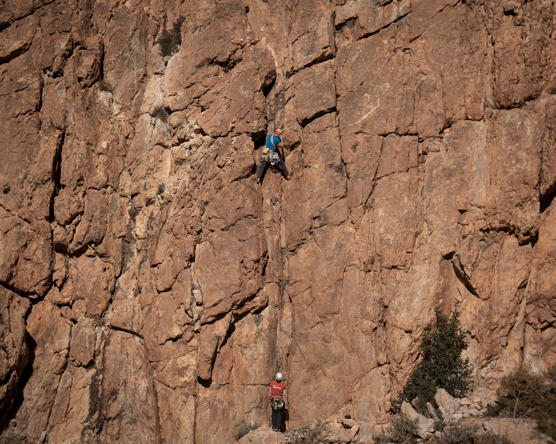 From the Washington Post: "Molly Thompson craned her neck so she could make out the man climbing the tower of red rock. Squinting into the desert sun, she tried to identify a crack he could grab on to or a ledge wide enough for his foot. The climber, struggling to keep his grip, was her husband, Jesse Dufton. His left arm trembled from the effort. His foot probed for a more secure hold, but found nothing. “A little bit higher there should be a foothold,” Molly said into a headset. When Jesse extended his foot again, it missed the tiny outcropping. He returned his foot to its original position and tiptoed on three millimeters of quartzite, 200 feet above the ground. He did not look down. He did not look anywhere. Jesse has advanced rod-cone dystrophy. Put another way: He is completely blind. And another: He is one of the world’s few elite blind rock-climbers."
