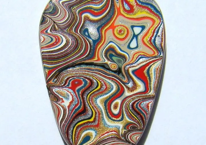 From Why Is This Interesting: "In the 1940s and 50s, Detroit’s automotive factories had a beautifully messy problem: paint. Workers hand-sprayed enamel paint onto cars on assembly lines, with excess overspray gradually building up on the tracks, skids, and walls of painting bays. This oversprayed paint accumulated over years, layer by layer—creating thick, multicolored deposits that factory workers would periodically chip away and discard. What they were throwing out, however, would eventually become one of the most sought-after materials in contemporary jewelry making: Fordite, also known as Detroit agate. As cars were spray painted by hand, the hardened enamel paint built up and baked, creating sedimentary-like layers that mirror how natural agates form over millennia. When cut and polished, the visual result is striking—especially in the most valuable samples from the late 1960s and early 1970s, the period of bright high impact colors like Ford’s Grabber Blue or Mopar’s Plum Crazy purple."
