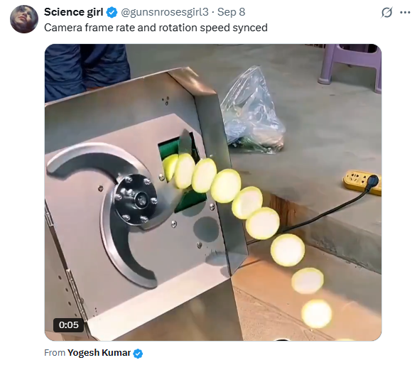 When a camera's frame rate is synchronized with the blades of a cutting machine