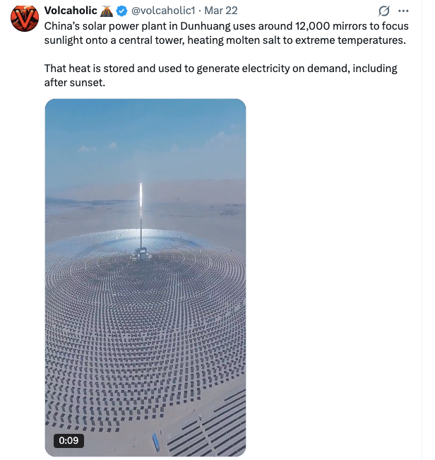 This solar power plant uses the sun to heat up salt to extreme temperatures