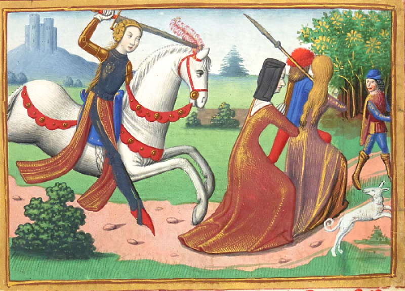 From Medieval Manuscripts: "Exactly 630 years ago today, a woman called Eleanor Rykener found herself in trouble. On the night of 11 December 1394, on Soper’s Lane off Cheapside, she had agreed to go into a stall with a client named John Britby, having first demanded an unspecified amount of money for her services. Medieval London’s anti-prostitution laws made this a hazardous venture, but Eleanor was an experienced sex worker, and must have concluded that Britby’s money was worth the risk. Unfortunately, they were discovered by city officials while engaging in ‘that detestable, unmentionable, and ignominious vice’, and were hauled up before the Mayor of London for questioning. It was during the questioning that Eleanor, still wearing the dress she had been arrested in, was revealed to have been born John Rykener. Eleanor’s remarkable story is preserved in a single document: the record of her questioning held in the London Archives, currently on display in our exhibition Medieval Women: In Their Own Words."