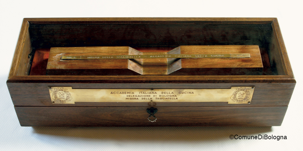 The standard width of tagliatelle pasta is set by a solid gold piece