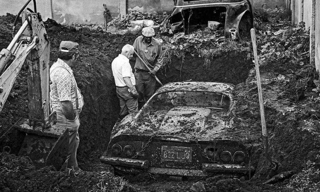 From Now I Know: "In early 1978, a couple of boys were hanging out in their yard in Los Angeles, digging in the dirt. Their family had just moved into the home – a rental – a few months earlier, and the kids were exploring as kids do. As they dug, they hit something oddly metallic and definitely not something that should have been buried in their yard: a 1974 Dino 246 GTS, an expensive sports car made by Ferrari. The car was wrapped in plastic, albeit imperfectly. Towels were stuffed in the exhaust pipe, as if to keep soil-dwelling bugs from getting in. There was even a carpet placed along part of the top of the car, to protect it from, well, who knows what. It looked like whoever buried the car had tried to preserve it, in hopes of recovering it later. But who, and why? And how do you bury a fancy sports car in the middle of Los Angeles without anyone noticing?"
