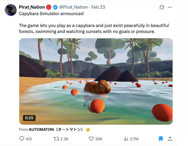 This game lets you pretend to be a capybara and the only goal is to relax