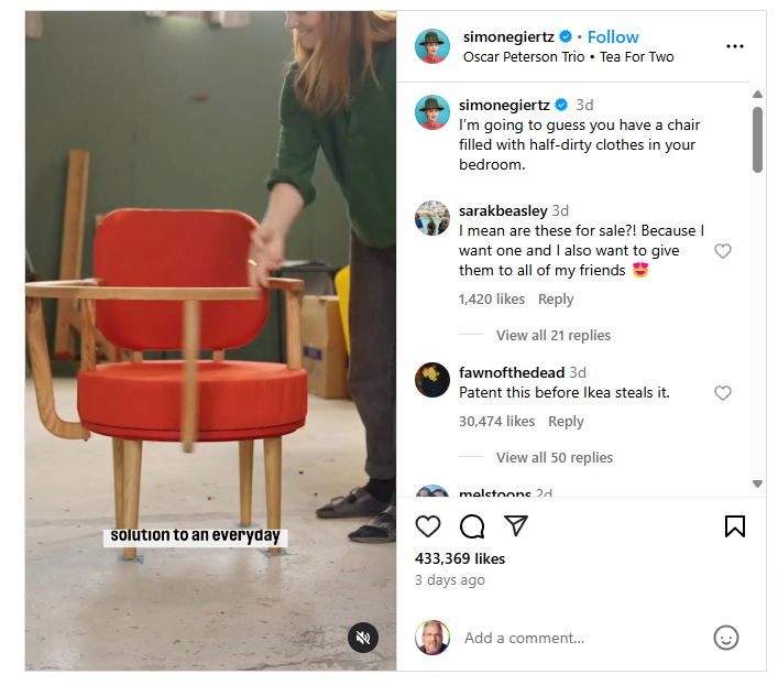 Simone Giertz built a chair that's also a lazy susan for your clothes