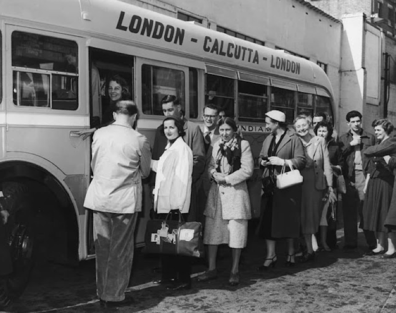 From Vintages: "The bus service from London, England to Calcutta, India is considered to be the longest bus route in the world. The service, which was started in 1957, was routed to India via Belgium, Yugoslavia and West Pakistan – a route known as the Hippie Route. According to reports, it took about 50 days for the bus to reach Calcutta from London. The voyage was 32, 669 km long and was in service until 1976. The cost of the trip was £85 and this included food, travel and accommodation. The trip was equipped with reading facilities, separate sleeping bunks for everyone, and fan-operated heaters. There was a kitchen with all equipment and amenities. There was a forward observation lounge on the upper deck of the bus, and it took time to spend at major tourist destinations along the way, including the Taj Mahal on the banks of the Ganges. Shopping was also allowed in Tehran, Salzburg, Kabul, Istanbul and Vienna."