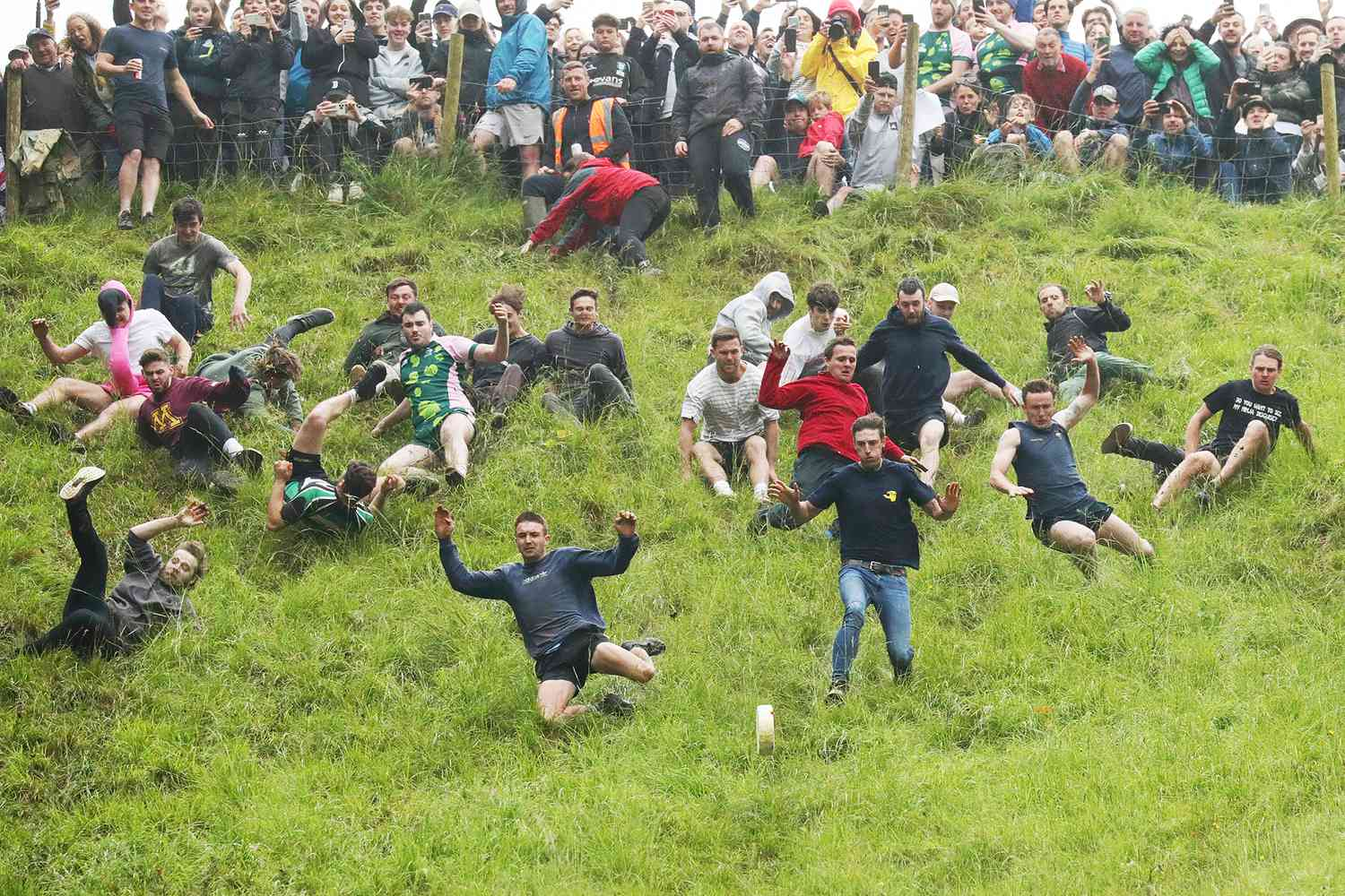 From Nadeem Badshah in The Guardian: "A woman was knocked unconscious while running down a hill to chase a 3kg cheese wheel, but still managed to win her race. Video footage posted on social media shows Delaney Irving falling while pursuing the double gloucester down the almost-vertical Coopers Hill in Brockworth, near Gloucester. Irving, 19, said she only realised she had won the women’s race when she woke up in the medical tent. Hundreds of people took part in the contest, which went ahead this year despite safety concerns. Irving, from Vancouver Island in Canada, told the BBC “I remember running, then bumping my head, and then I woke up in the tent. I still don’t really believe it, but it feels great,” she said. The tradition of running down a hill trying to catch a wheel of cheese is believed to be about six hundred years old."