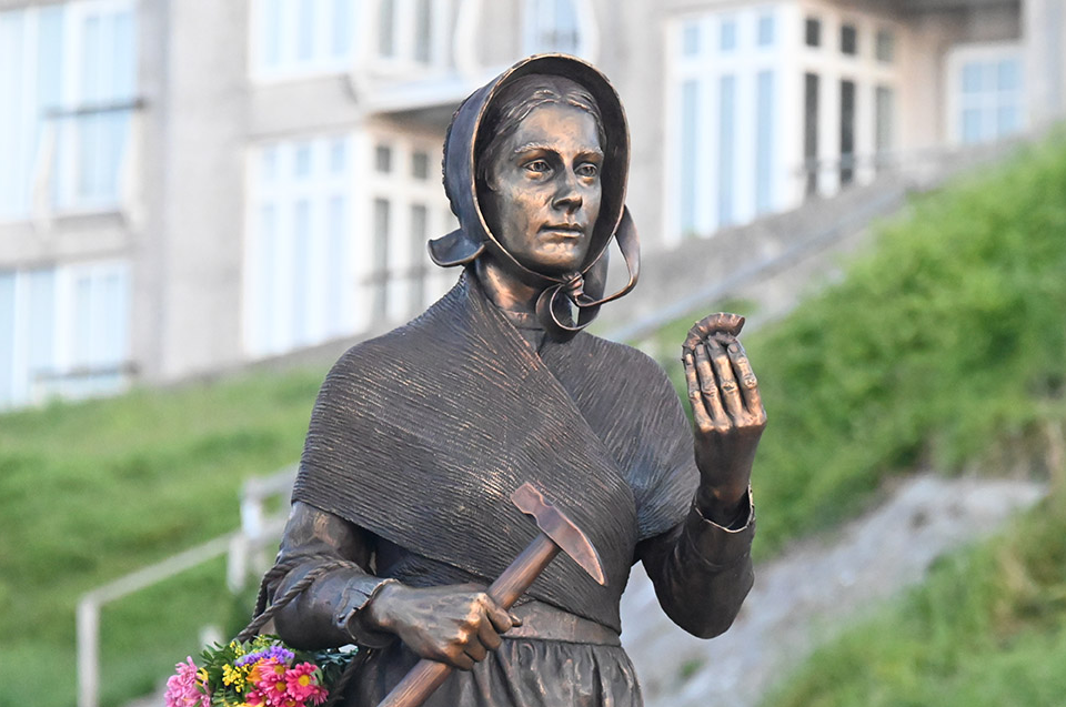 From Wikipedia: "Mary Anning was an English fossil collector, dealer, and palaeontologist. She became known internationally for her discoveries in Jurassic marine fossil beds in the cliffs along the English Channel in Southwest England. Anning's findings contributed to changes in scientific thinking about prehistoric life. Her discoveries included the first correctly identified ichthyosaur skeleton when she was twelve years old, the first two nearly complete plesiosaur skeletons, and the first pterosaur skeleton located outside Germany. Anning struggled financially for much of her life. As a woman, she was not eligible to join the Geological Society of London, and she did not always receive credit for her contributions. However, her friend, geologist Henry De la Beche, who painted Duria Antiquior, the first widely circulated pictorial representation of a scene from prehistoric life derived from fossil reconstructions, based it largely on fossils Anning had found and sold prints of it for her benefit."