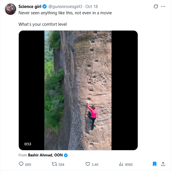 Don't watch this person climbing an ancient staircase if you are afraid of heights