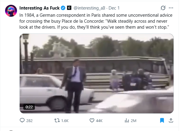 A German TV correspondent in 1984 shows how to cross the Place de la Concorde in Paris