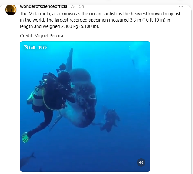 The Mola is a relative of the sunfish and can grow to be more than 5,000 pounds