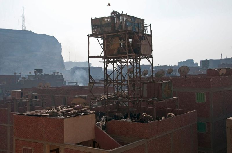 Gaze across the Cairo skyline and your eyes might hit stilted, rickety structures precariously perched on rooftops. Looking like horrible POW cages, these are in fact nest boxes for pigeons that've been trained to fly around the city in large, sky-darkening squadrons. This feathery facet of Egyptian culture served as the inspiration for a great new photography series by Manuel Alvarez Diestro, the same guy who soulfully documented Hong Kong's super-dense cemeteries. The 42-year-old photographer traveled from his London home to Cairo during and after the 2011 revolution to work in some of the city's poorer neighborhoods. His focus was the zabbaleen, a disadvantaged community of garbage people (literal translation) whose duty it is to collect and sort through rubbish, much like Brazil's trash mountain-climbing catadores.