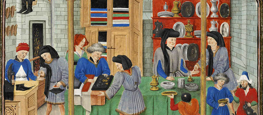 In many ways, the story of medieval economic thought begins with the life of the founder of the Franciscan Order, Saint Francis of Assisi. He was born Giovanni di Pietro di Bernardone in 1181 in Umbria, Italy, his father a silk merchant and his mother a noblewoman from Provence. The family was part of a new class of wealthy merchants who inhabited the Latin Mediterranean from Italy and southern France to Barcelona. It was a socioeconomic stratum that Francis would reject. In 1205, he had a mystical vision that led him to forsake earthly wealth. He renounced his inheritance and, in a stunning display of his dedication to total poverty in the name of Christ, stripped his clothes off in public, driving his horrified father to disown him. From then on, he wore only coarse peasant garb, walking and dwelling among the poor, living only from donations.