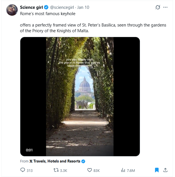 Rome's most famous keyhole frames St. Peter's Basilica through the gardens of Malta
