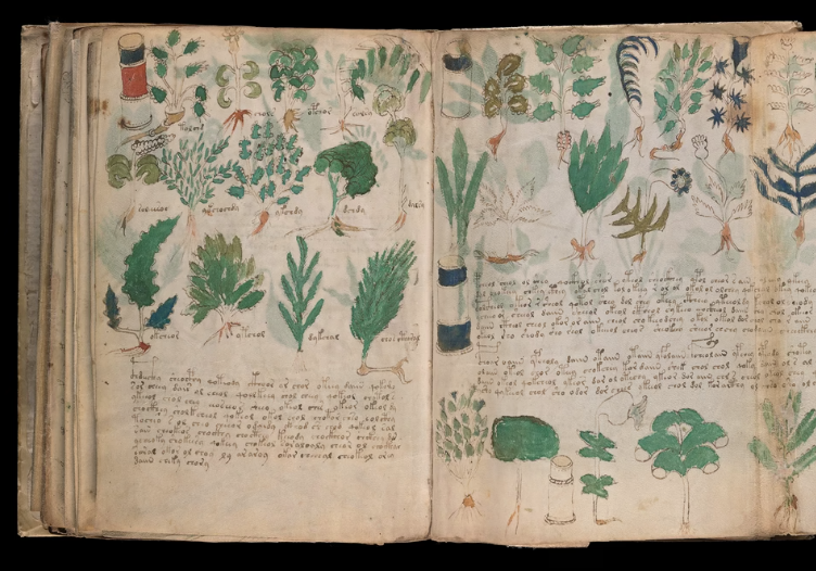 From The Atlantic: "In the library catalog, the book—a parchment codex the size of a hardcover novel—had a simple, colorless title: “Cipher Manuscript.” But newspapers tended to call it the “Voynich Manuscript,” after the rare-books dealer Wilfrid Voynich, who acquired it from a Jesuit collection in Italy around 1912. An heir sold the manuscript to another dealer, who donated it to Yale in 1969. Its 234 pages contained some 38,000 words, but not one of them was readable. The book’s unnamed author had written it, likely with a quill pen, in symbols never before seen. Did they represent a natural language, such as Latin? A constructed language, like Esperanto? A secret code? Gibberish? Scholars had no real idea. And there were otherworldly illustrations: groups of naked women who held stars on strings, like balloons, or stood in green pools fed by trickling ducts and by pipes that looked like fallopian tubes. Many of the women, arms outstretched, seemed less to be bathing than working, almost like plumbers."