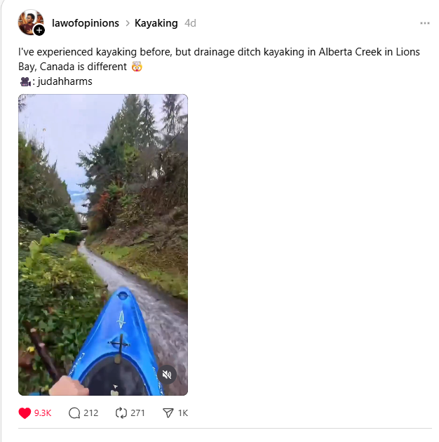 Kayaking down a drainage ditch in the spring is an extreme sport