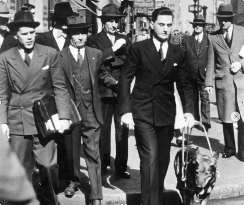 From Neatorama: "Have you ever wondered why a blind person's guide dog is called a seeing eye dog instead of just a guide dog? That's because they came came from the organization The Seeing Eye, founded in 1929 by Morris Frank. Frank lost his sight in one eye at age six, and the other at 16. He heard about an innovative program in Germany that trained dogs to guide blind people. Frank ended up going to Switzerland to work with dog trainer Dorothy Harrison Eustis and came back with a female German shepherd he named Buddy. The real innovation in training Buddy and other guide dogs was "intelligent disobedience." Buddy was trained to disregard her owner's commands when the situation called for it, such as in dangerous traffic. In 1928 Frank gave a demonstration in New York City to show reporters how Buddy could guide him safely in walking through Manhattan. The next year, Frank and Eustis opened the dog training program that's still in operation today."