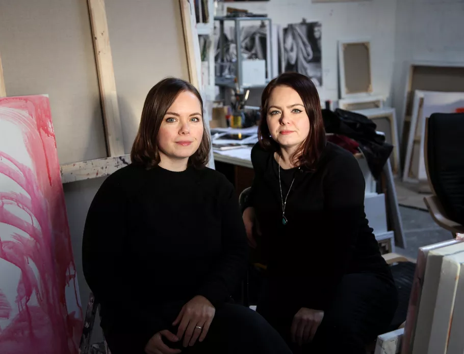 From Artsy: "Painters Laura and Rachel Lancaster are twins, but their work is anything but identical. Laura’s is energetic, with oil paint thickly applied to pick out figures in landscapes. Meanwhile, Rachel depicts moments of stillness and intimacy in soft shades. They paint in parallel, from the same studio in Newcastle, England, each with her own take on the nuances of memory in our image-dominated culture. I met Laura and Rachel in their shared studio in the leafy Ouseburn area of Newcastle, just outside of the city center, amid galleries, boutiques, bars, and restaurants. They have been based together in this Grade II-listed converted flax mill for over a decade. Rachel’s palette is piled high with only two colors in all their gradients, adorned with a cloth that I learn is used to wipe back layers of glaze to reveal the pale canvas beneath. Whereas on Laura’s side, tins of mixed paint totter in piles all around."