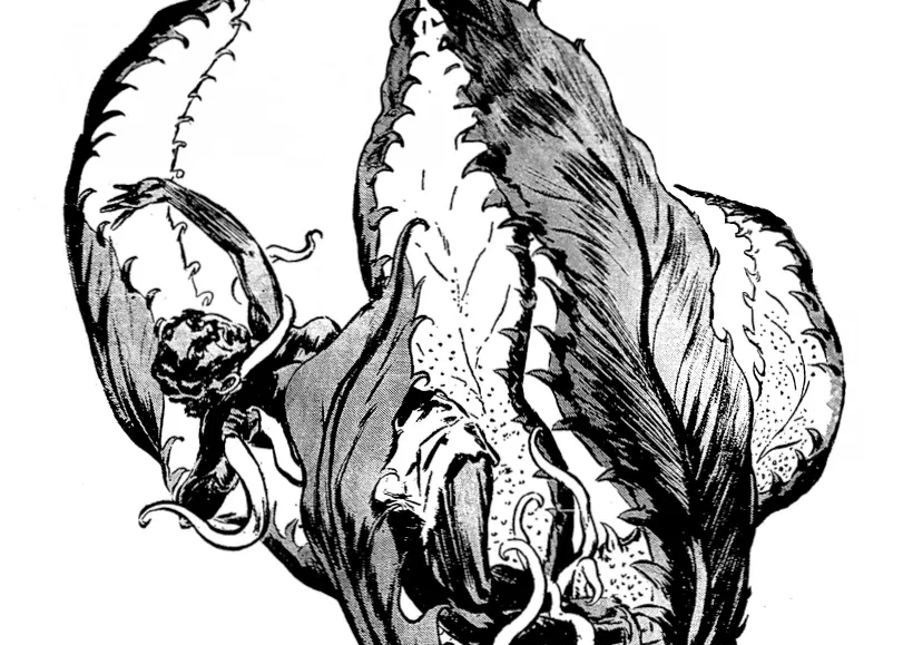 The earliest and most influential account appeared in the New York World newspaper on April 28, 1874. According to that report, a German botanist named Karl Leche encountered the plant while traveling with a pygmy tribe. Leche claimed the tree’s trunk rose roughly eight feet high and bore a striking resemblance to a massive pineapple. From its crown extended eight enormous leaves, each reaching some twelve feet in length. Embedded within the plant were shallow, dish-like structures that secreted a sugary liquid said to induce violent intoxication. From the upper portions of the tree sprouted long, green, hair-covered tendrils and finger-like appendages that writhed continuously, as if animated by their own will. Leche reported witnessing a ritual in which the Mkodos forced one of their women onto the plant and compelled her to drink the sap. As the tribe chanted, the tree allegedly responded: its tendrils tightened around the victim while the massive leaves folded inward, enclosing her completely. (via Thunderbird Photo)