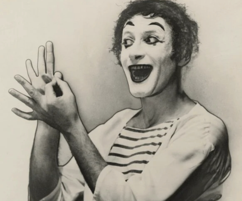 From Messy Nessy Chic: "His name is synonymous with the art of mime, a performer whose silent expressions spoke volumes. But beyond his pale-faced persona and invisible walls lies a story of remarkable bravery and heroism. During World War II, Marceau used his unique talents to save children from the horrors of Nazi-occupied France, first using mime to help children quietly escape and keep them calm during perilous escapes across borders. For Marcel and his earliest young students, mime was a powerful tool of survival. Born Marcel Mangel in Strasbourg, France, in 1923, Marceau’s early life was marked by the turmoil of impending war. When the Nazis invaded France in 1940, he was thrust into a world where survival required courage, cunning tactics, and often, silence. His father was deported to Auschwitz in 1944, where he was killed. This loss fueled Marceau’s determination to fight back in any way he could."