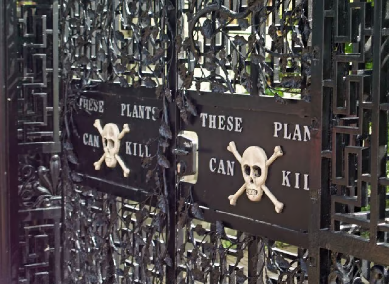 From Now I Know: "The aptly named Poison Garden at Alnwick Castle in England is filled exclusively with around 100 toxic, intoxicating, and narcotic plants. The boundaries of the Poison Garden are kept behind black iron gates, only open on guided tours. Visitors are strictly prohibited from smelling, touching, or tasting any plants. There are plenty of tours — every 30 minutes while the garden is open to the public — and to date, no one has died while traversing its grounds, despite the ominous warning on the gates. But that’s not because the warning is wrong. The most poisonous plant is ricin, better known as the castor bean or castor oil plant, which the Guinness Book of World Records considers that to be the world's most poisonous plant. And there’s the laburnum tree, the second-most poisonous tree in the UK after the yew. The tree is so poisonous that if one of the branches was to fall to the floor, lay there for several months and a dog picks it up to hold as a stick, chances are the dog won't finish the walk."