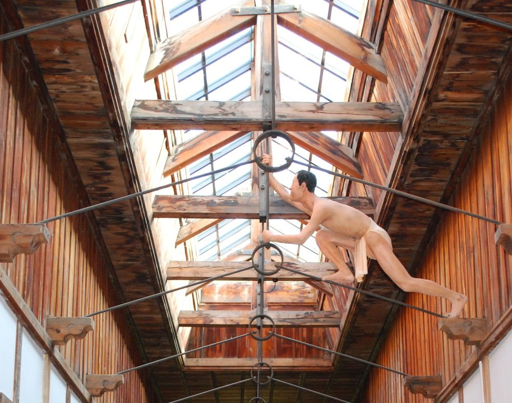 At the foot of Mount Tento in Hokkaido stands the Abashiri Prison Museum, a place where Japan’s harsh penal past is preserved in timber and iron. The open-air museum—once an actual prison—now houses the original cell blocks, administration offices, and chapel, all of which were relocated and restored to show what life was like behind its cold wooden walls. Wandering through its dim corridors, visitors often stop short at a startling sight: a life-size mannequin dangling overhead, seemingly caught in the act of wriggling to freedom through the rafters. Clad in nothing but a white loincloth, the figure portrays Yoshie Shiratori, a prisoner no jail could hold. Between 1936 and 1947, the man known as the “Harry Houdini of Japan” pulled off four daring prison escapes, earning a legend’s status among escape artists. (via Amusing Planet)