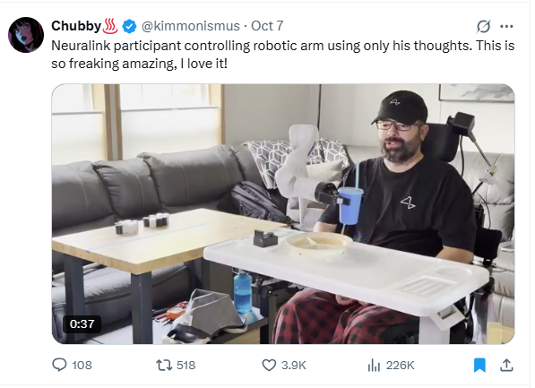 He can control a robot arm using his mind