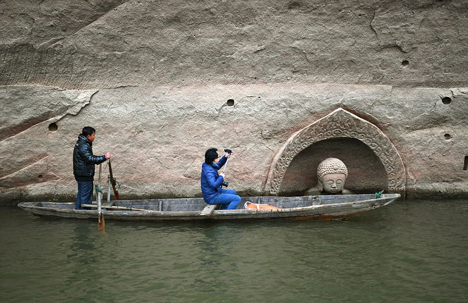 Plunging water levels in the Yangtze River unveil 600-year-old statues