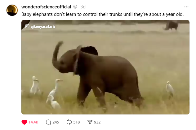 Baby elephants don't learn to control their trunks until they're a year old