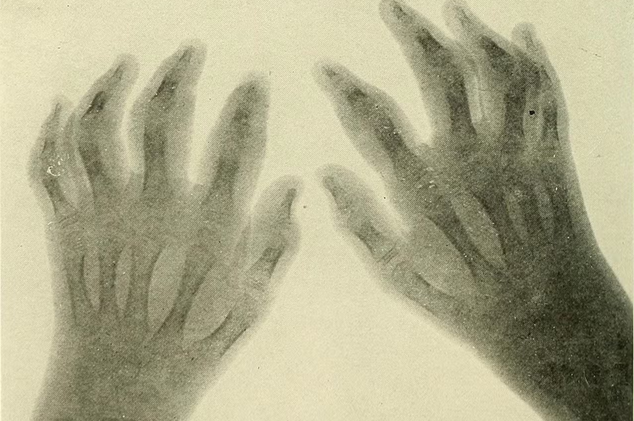 Wilhelm Röntgen, a German physicist, accidentally discovered the X-ray in 1895 while tinkering in his lab. Röntgen had wondered whether streams of electrons called cathode rays could move through glass. He had covered his cathode tube in heavy black cardboard, but he noticed that a green glow seeped through. This odd phenomenon persisted even when the receiving surface was more than 6 feet away from the tube. Röntgen beamed the rays through items of varying thickness and observed that they showed different degrees of transparency to this light when recorded on a photographic plate. He named them X-rays, with X referring to “unknown.” In 1901, Röntgen received the inaugural Nobel prize in physics, among other awards, and several cities named streets after him. Still, he “retained the characteristic of a strikingly modest and reticent man,” the Nobel Prize organization notes. Röntgen never applied for patents and said that “his inventions and discoveries should belong to humanity. (via Nautilus)