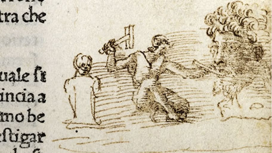 A drawing nestled in the margin of a 15th-century edition of Dante’s Divine Comedy shows Michelangelo at work, says author and scholar James Hall who researched the sketch for his new book, The Artist’s Studio: A Cultural History. Hall said his interest in the illustration was piqued at a lecture on the Dante book given by Bill Sherman, the director of the Warburg Institute in London, a centre for academic research into the Renaissance. The drawing shows an artist at work sculpting a colossal head, wielding a mallet. An armless statuette stands behind him. “You don’t usually get something that looks naturalistic and human which is telling an extremely interesting story, illustrating a simile in Dante,” Hall said.