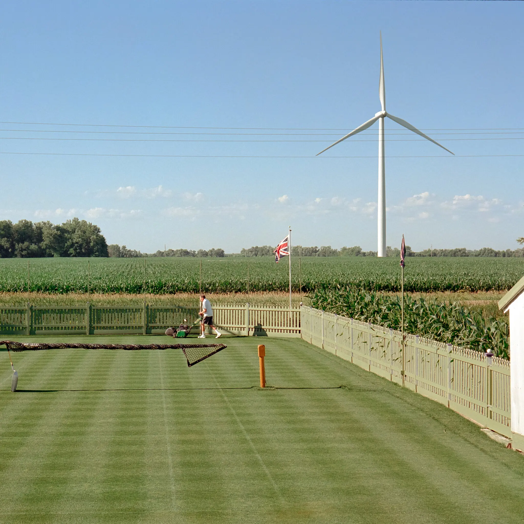 Exactly 20 years ago, Mark Kuhn, together with his wife Denise and their two sons, Mason and Alex, began the laborious and experimental undertaking of building a grass tennis court on their farm on the outskirts of Charles City, Iowa. It took more than a year to finish. It was the realization of a dream the reluctant third-generation farmer had held since 1962, having become enamored of Wimbledon two years previously when he heard a BBC broadcast on his grandfather’s shortwave radio. Twelve years old and absent-mindedly doing his chores, Mark noticed the cattle feedlot he was standing in was about the size of a regulation tennis court. But it wasn’t until the sudden death of a close friend, some 40 years later, that he was galvanized to try to make his far-fetched daydream a reality.
