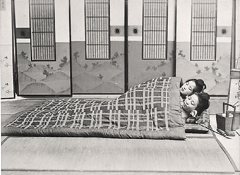 From Wikipedia: "Yobai, also known as 'night crawling.' was a Japanese custom usually practiced by young unmarried people. It was once common all over Japan and was practiced in some rural areas until the beginning of the Meiji era and even into the 20th century. At night, young unmarried men silently entered houses with young unmarried women. A man would silently crawl into a woman's room and make his intentions known. If the woman consented, they would have sex. By the morning, he would leave. The girl's family might know about it but pretend they did not. It was common for young people to find a spouse like this. In some areas, any post-puberty woman, married or unmarried, could be visited by any post-puberty man, married or unmarried, from the village and even by men from other villages and travellers. In other places, only married women and widows could be visited, while single girls could not."