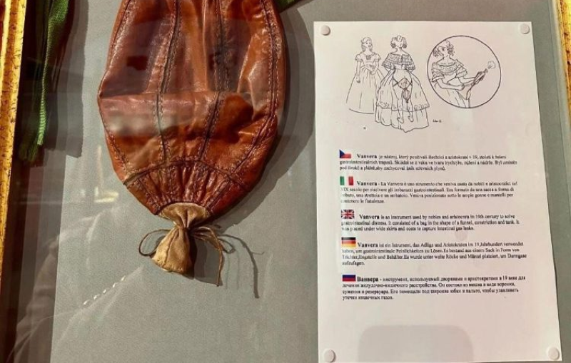 The origins and history of the vanvera are shrouded in mystery; some sources claim it can be traced back to ancient Egypt, while others that it was inspired by Roman creativity, but there is no real evidence that this gas-muffling invention has its roots in ancient history. What everyone seems to agree on is that the vanvera was used by the aristocracy of that era, primarily women who could easily conceal it under their large, elaborate dresses. The vanvera on display at the Sex Machines Museum in Prague consists of a leather pouch that connects to the wearer’s behind, muffling farts and containing the foul-smelling gases during social events. Historians say the vanvera was used in Italy during the 17th century, and it came in several varieties. There was the small tube worn by women under their skirts, and a larger, more complex apparatus that consisted of a series of pipes that carried the flatulence of aristocrats from under the covers of their beds, through the window, outside. (via Oddity Central)