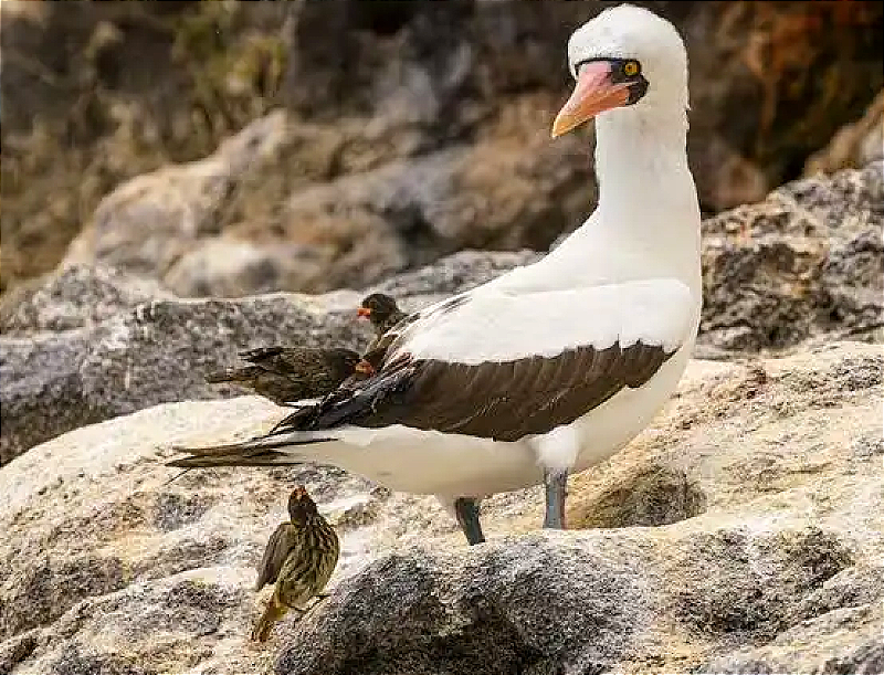 The Galapagos vampire ground finch drinks the blood of blue-footed boobies