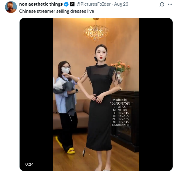 A Chinese influencer selling dresses changes outfits every few seconds