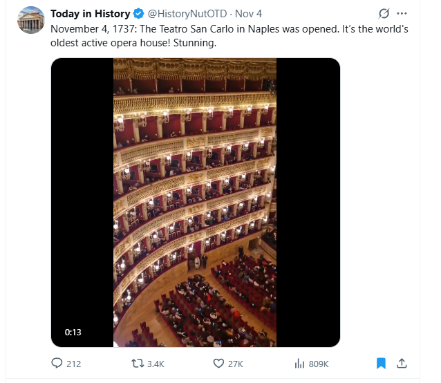 The Teatro San Carlo in Naples is the world's oldest active opera house