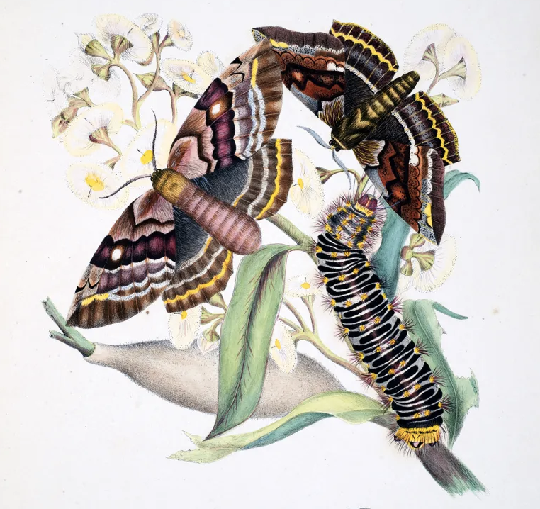From Maria Popova in The Marginalian: "Daughters of the Bombay-born Australian entomologist Alexander Walker Scott, Helena and Harriet were barely out of childhood when they started harmonizing their father’s scientific studies with their shared artistic gift. When the girls were in their teens, the family moved from Sydney to Ash Island, where they filled their days and their minds with activities. The sisters spent twenty years adventuring into nature and documenting their curiosity, in field notebooks and collecting boxes and elaborate paintings. They stayed up at night to observe and illustrate in real time the metamorphoses unfolding in creatures with life-cycles of days — transformations so subtle that the sisters often used the single hair of a paintbrush to render the details."