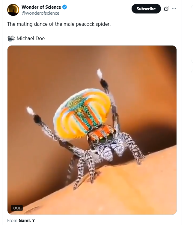 The mating dance of the male peacock spider