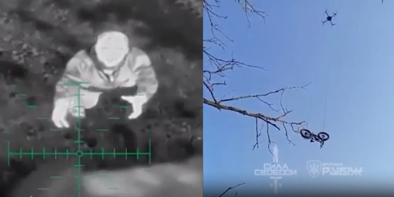 A drone drops an electric bike to help Ukrainian soldier escape Russians